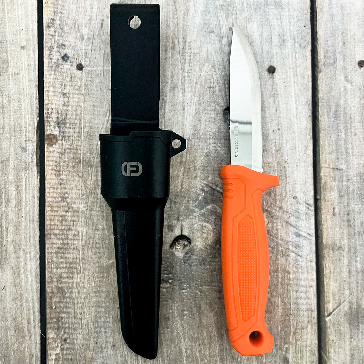 Нож нержавеющее лезвие с пластик.ножнами 2101 FINLAND