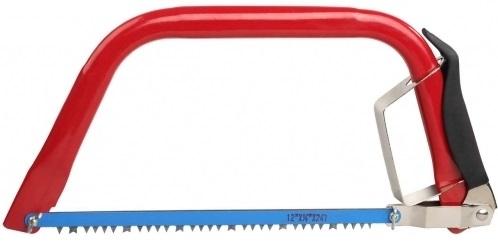 Лучковая пила в комплекте с двумя полотнами (по металлу и по дереву). Может применяться как для продольного, так и для поперечного пиления. Длина лезвия пилы – 300 мм (12 дюймов). Материал изготовления полотен высококачественная закаленная сталь. Пластиковая накладка на рукоятке обеспечивает надежный обхват (пила не выскользнет из рук).Характеристики