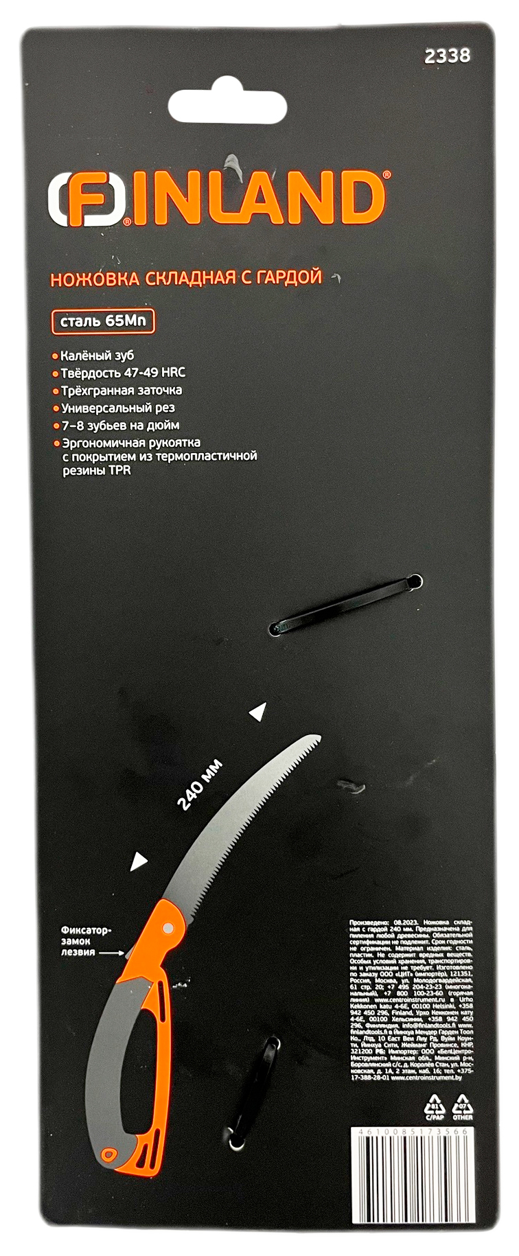 Ножовка садовая складная с гардой 2338 FINLANDПредназначена для пиления древесины: брус, доска, осб, дсп, мдф, хдф.