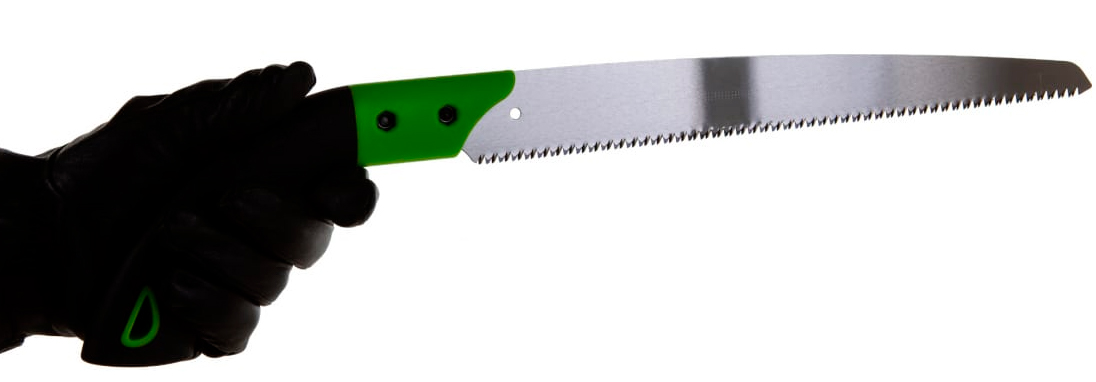 Обрезиненная ручка садовой пилы с каленым зубом;