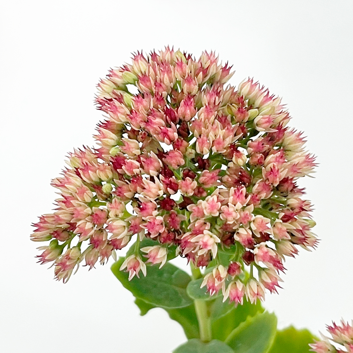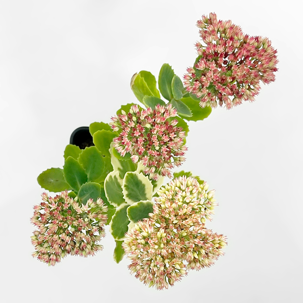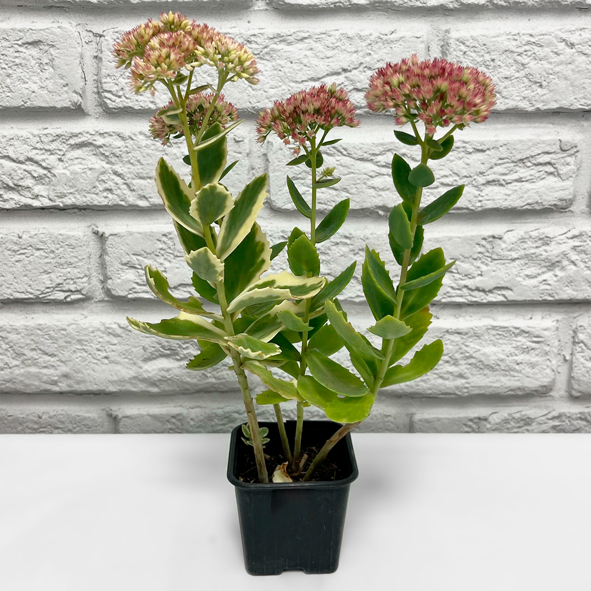 Очиток Отумн Шарм саженцы миксЦветки нежно-розовые, звёздчатые, затем приобретают более красные тона. Цветение в августе-сентябре. Листья серовато-зелёные с кремово-жёлтой зазубренной каймой. Высота растения до 50 см. Выносливое, неприхотливое растение.