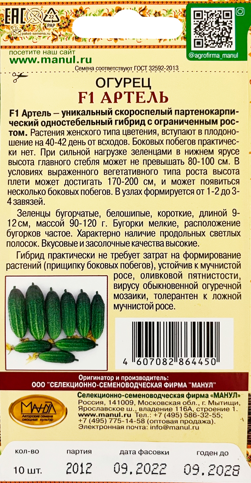 Огурец Артель F1 семена