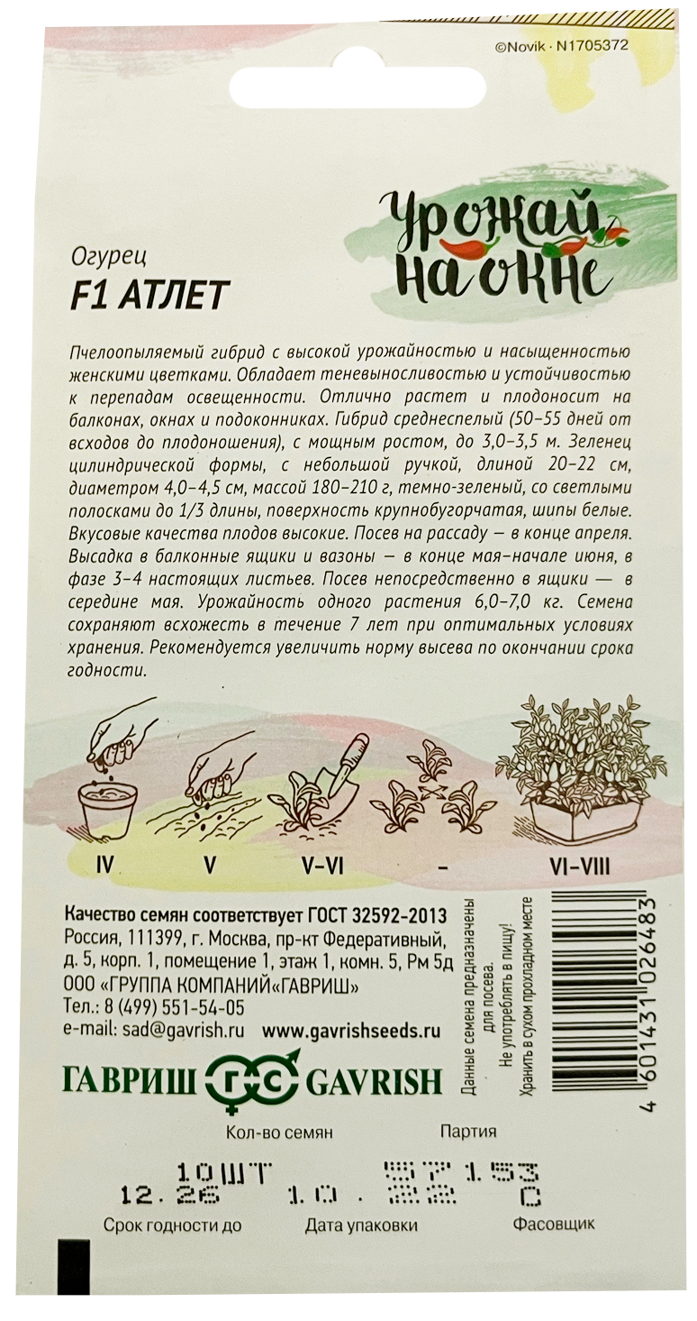 Огурец Атлет F1 10шт. сер. Урожай на окне семена