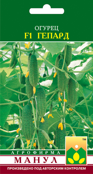 Огурец F1 Гепард - скороспелый партенокарпический пучковый гибрид для весенних теплиц, тоннелей, открытого грунта. Партенокарпия очень высокая, на каждом растении одновременно происходит налив большого количества зеленцов. Плодоношение наступает на 37-38-й день от всходов; период плодоношения длительный. Ветвление ограничено. В узлах формируется от 1-2 до 3-4 завязей. Зеленцы бугорчатые, белошипые, интенсивной зеленой окраски с продольными светлыми полосами, длиной 11-13 см, с частым крупным опушением. Засолочные и вкусовые качества высокие. Гибрид относительно холодостойкий, устойчив к мучнистой росе, оливковой пятнистости, вирусу обыкновенной огуречной мозаики, толерантен к ложной мучнистой росе, корневым гнилям. Плотность посадки в теплицах 2,5 раст./м2, в открытом грунте 3-5 раст./м2.Характеристики