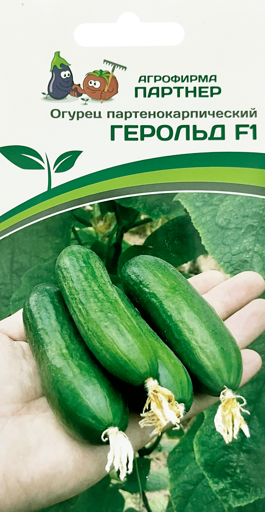 Огурец Герольд F1Раннеспелый, партенокарпический гибрид женского типа цветения. От всходов до начала сбора 40-42 дня. В узле формирует 2-3 зеленца. Плоды очень короткие, длиной 8-10 см, диаметром 3-3,5 см, гладкие, светло-зелёного цвета, массой около 70-85 г. Огурчики обладают восхитительным вкусом и ароматом, замечательно подходят для свежего потребления. Выращивается в теплицах и открытом грунте. Гибрид устойчив к обыкновенной огуречной мозаике и вирусу пожелтения жилок огурца. Урожайность 12,0-15,0 кг/м².
