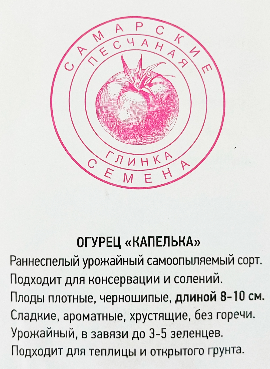 Огурец Капелька (10шт) Самарские семена семена