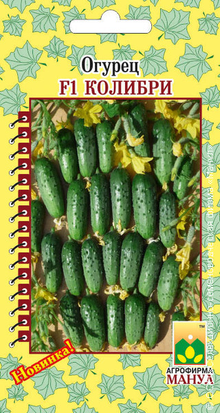 Огурец F1 Колибри - партенокарпический пучковый корнишонный гибрид сортотипа Балконный, женского или преимущественно женского типа цветения; предназначен для выращивания в весенне-летнем обороте на балконах, верандах, лоджиях, в открытом грунте и весенних теплицах. Скороспелый, с ослабленным ветвлением. Боковых побегов много, но они короткие, детерминантного типа. Листья мелкие, расположены горизонтально поверхности грунта. Междоузлия основной плети очень короткие. Зеленцы короткие, бугорчатые, белошипые, длиной 5-8 см, диаметром 2,5-3,5 см, массой 60-80 гр., веретеновидной формы, на длинной плодоножке. Частота расположения бугорков средняя, бугорки среднего размера. На поверхности зеленцов выражены короткие светлые продольные полоски. В узлах формируется от 2 до 8-10 завязей. Вкусовые и засолочные качества высокие. Гибрид устойчив к оливковой пятнистости, вирусу обыкновенной огуречной мозаики, мучнистой росе, толерантен к ложной мучнистой росе.Характеристики