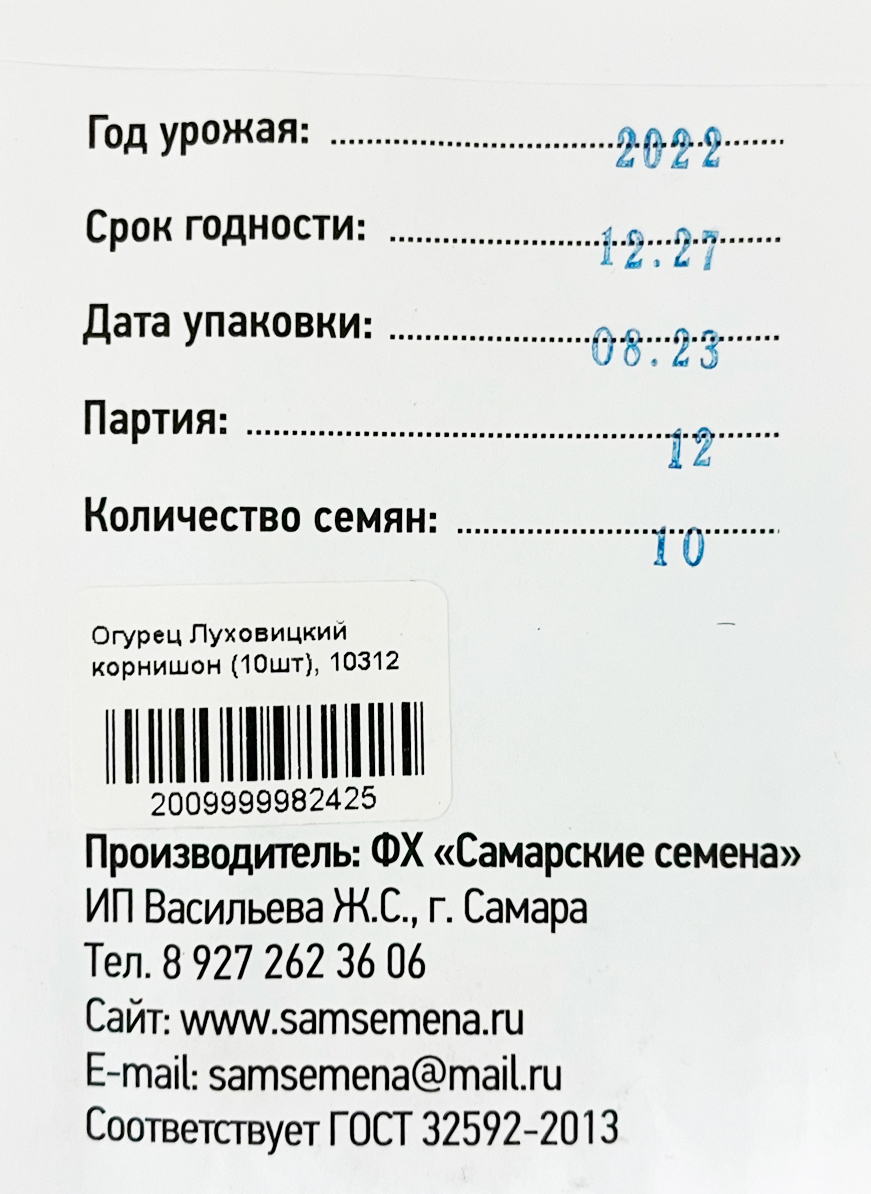 Огурец Луховицкий корнишонСкороспелый (45-50 дней от всходов до плодоношения) партенокарпический гибрид женского типа цветения. Предназначен для выращивания в защищенном и в открытом грунте под временными пленочными укрытиями. Посев на рассаду в конце апреля. Высадка рассады в грунт в конце мая – начале июня. Высадка рассады производится в фазе 3-4-х настоящих листьев. Посев непосредственно в грунт – в конце мая. Схема посадки 50х50 см. Зеленец длиной 10-13 см, массой 100-120 г, с часто расположенными мелкими четковыраженными бугорками, белошипый, без горечи. Плоды темно-зеленой окраски, плотные, обладают хорошей лежкостью и транспортабельностью. В пазухе листа образуется по 2-4 завязи (может быть и больше). Использование плодов универсальное. Гибрид имеет высокую устойчивость к настоящей и ложной мучнистым росам, корневым гнилям. Отличается дружным, ранним урожаем. Урожайность одного растения 6,0-8,0 кг.
