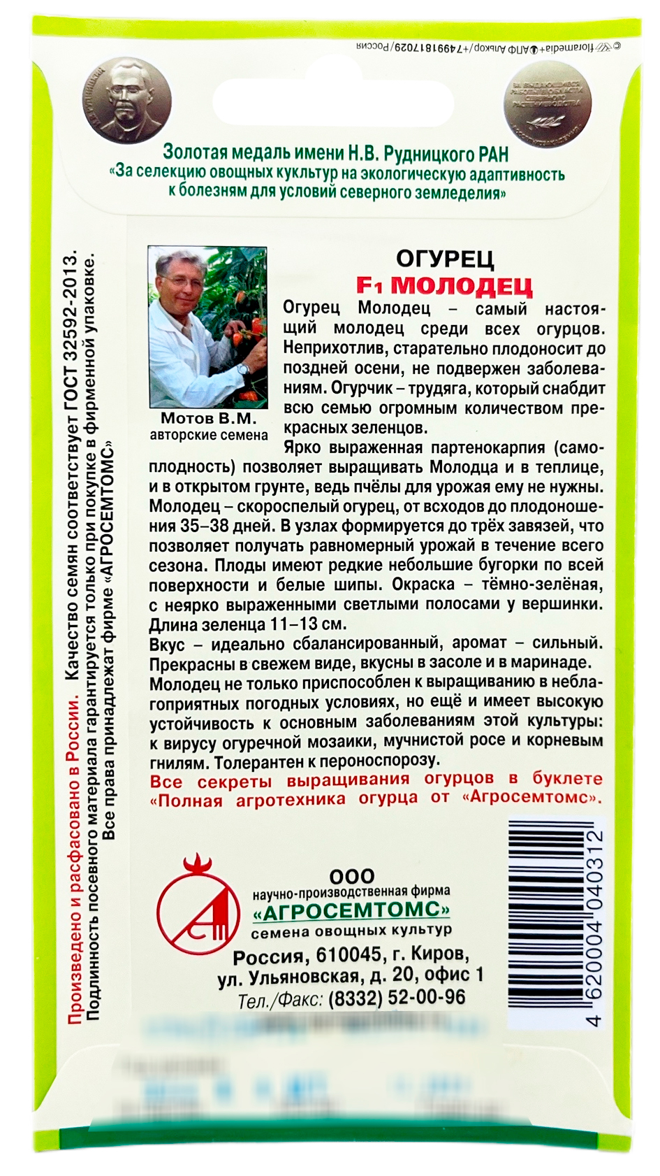 Огурец Молодец F1 АГРОСЕМТОМСОгурец Молодец – самый настоящий молодец среди всех огурцов. Неприхотлив, старательно плодоносит до поздней осени, не подвержен заболеваниям. Огурчик – трудяга, который снабдит всю семью огромным количеством прекрасных зеленцов.