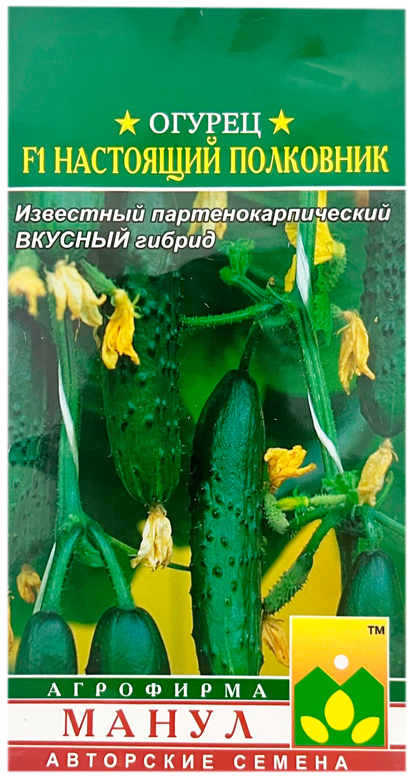 Огурец F1 НАСТОЯЩИЙ ПОЛКОВНИК МАНУЛСкороспелый партенокарпический гибрид женского или преимущественно женского типа цветения для весенних теплиц, тоннелей, открытого грунта. Характеризуется дружной отдачей урожая и одновременным наливом большого количества плодов на растении. Ветвление ниже среднего или среднее. Зеленцы красивой ярко-зеленой окраски, бугорчатые, белошипые, длиной 12-15 см; бугорки крупные, частота расположения бугорков средняя. Вкусовые и засолочные качества высокие. Гибрид устойчив к оливковой пятнистости, вирусу обыкновенной огуречной мозаики, толерантен к мучнистой росе, корневым гнилям.