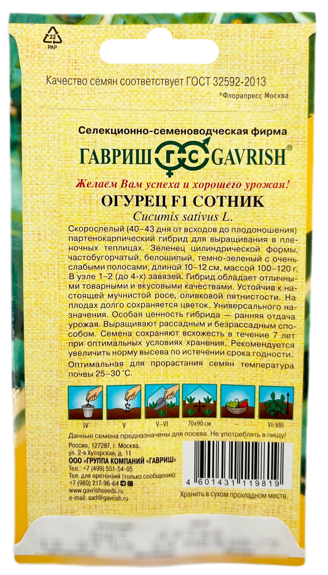 Огурец Сотник F1 5шт. автор. ПРОФЕССИОНАЛЬНАЯ ЛИНИЯ Н24 семена