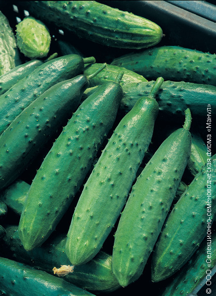 Основной, урожайный, среднеспелый пчелоопыляемый гибрид с сильным проявлением женского пола. Ветвление среднее. Зеленцы длиной 15-18 см, опушение белое, сложное, редкое. Отличается интенсивным развитием растений. Теневынослив; по сравнению с F1 Эстафета в меньшей степени реагирует при повышении ночной температуры воздуха смещением пола в мужскую сторону. Специфика гибрида заключается в том, что к моменту массового плодоношения ночную температуру воздуха целесообразно поддерживать на уровне 19-21˚С, что способствует более дружному наливу зеленцов. Гибрид имеет устойчивость к оливковой пятнистости и вирусу обыкновенной огуречной мозаики.Характеристики