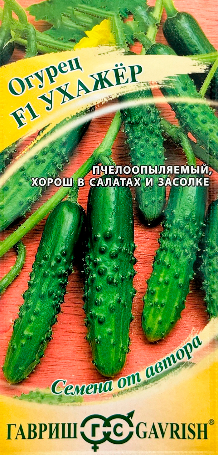 Огурец Ухажер F1 ГАВРИШНовый среднепоздний пчелоопыляемый гибрид (от всходов до плодоношения 55-60 дней), предназначен для выращивания в пленочных теплицах. Благодаря высокой насыщенности мужскими цветками, его можно использовать в качестве опылителя при подсадке к пчелоопыляемым гибридам с преимущественно женским типом цветения. Растение мощное, побегообразовательная способность средняя, лист крупный, темно-зеленый. Зеленец длиной 18-20 см, массой 180-200 г, крупнобугорчатый, белошипый. Вкусовые качества отличные. Плотность посадки 2,5 раст/м2. Урожайность 5-6 кг/раст.