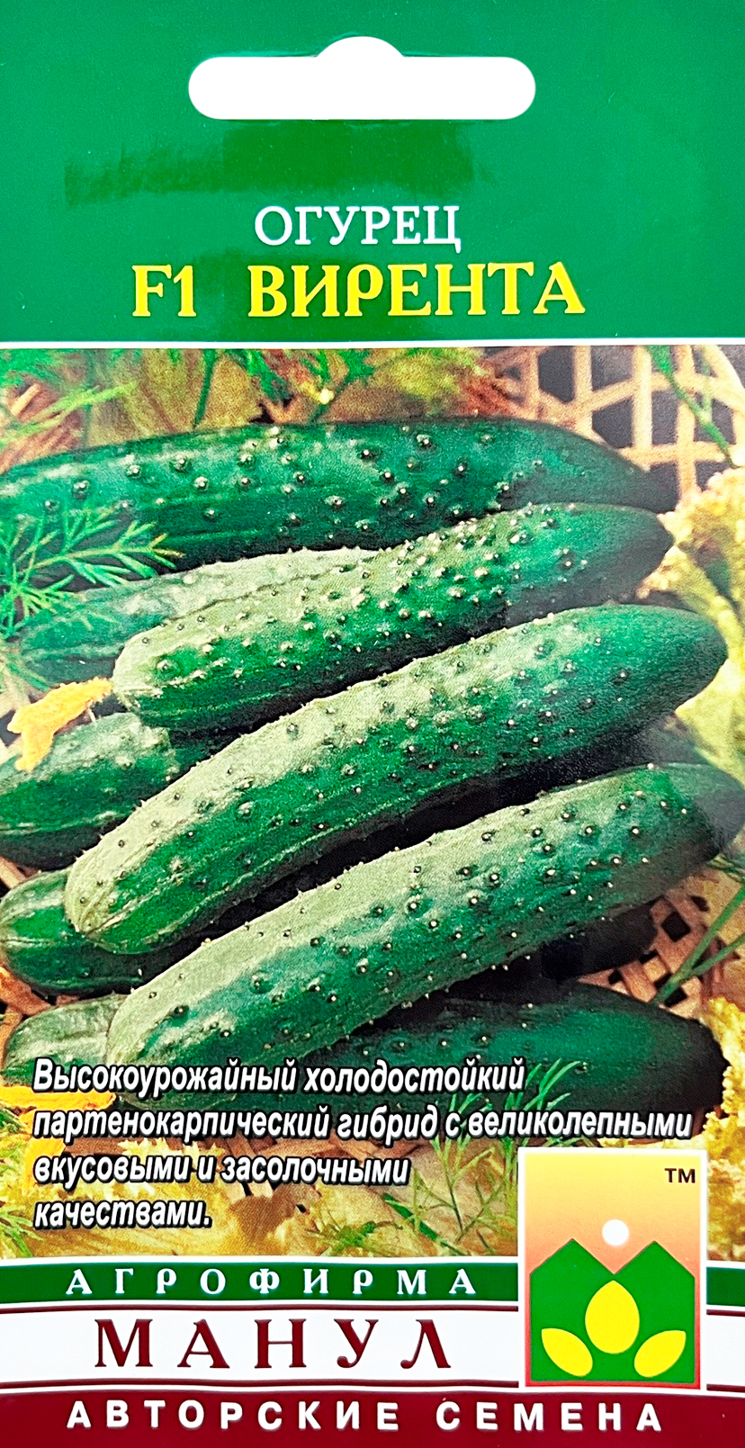 Огурец F1 ВирентаПартенокарпический высокоурожайный холодостойкий гибрид с длительным периодом плодоношения. Широко возделывается в весенних теплицах, тоннелях, а также в открытом грунте. В необогреваемых теплицах плодоносит до глубокой осени, когда формирование плодов у многих гибридов приостанавливается из-за низких ночных температур и холодных утренних рос. Гибрид светолюбивый, с широкой адаптационной способностью. Зеленцы бугорчатые, белошипые, со средне-частым опушением, длиной 13-15 см, без горечи; засолочные и вкусовые качества очень высокие. Устойчив к мучнистой росе, оливковой пятнистости, вирусу обыкновенной огуречной мозаики, толерантен к ложной мучнистой росе. Плотность посадки в теплицах 2,5 раст./м2, в тоннелях до 3 раст./2, открытом грунте 3-4 раст./м2.