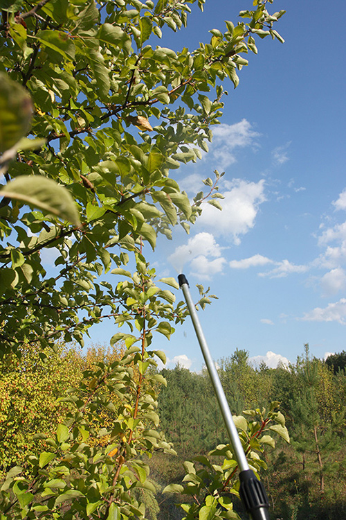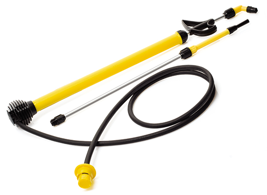 Для осуществления опрыскивания необходимо опустить шланг с фильтром в ёмкость с раствором.