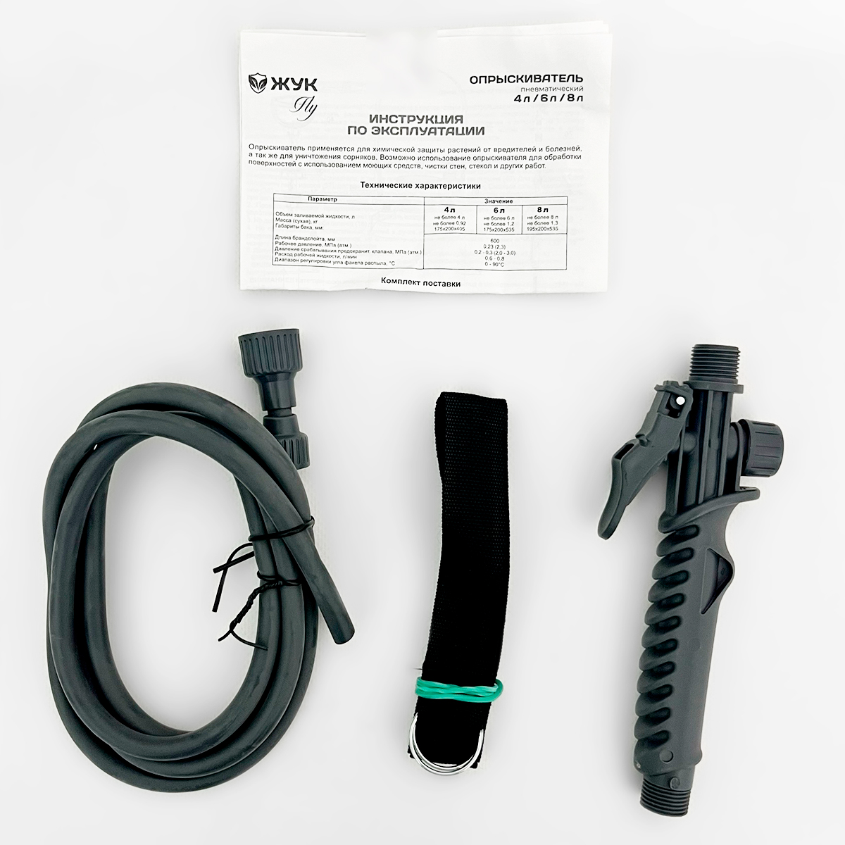 Объем бака 4 литра позволяет эффективно работать, покрывая нужную площадь, без необходимости частой дозаправки опрыскивателя. Мерная шкала на баке показывает остаток содержимого.