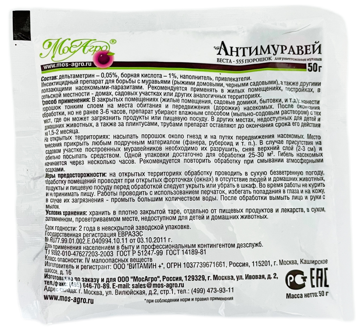 Антимуравей 50г пакет МосАгро