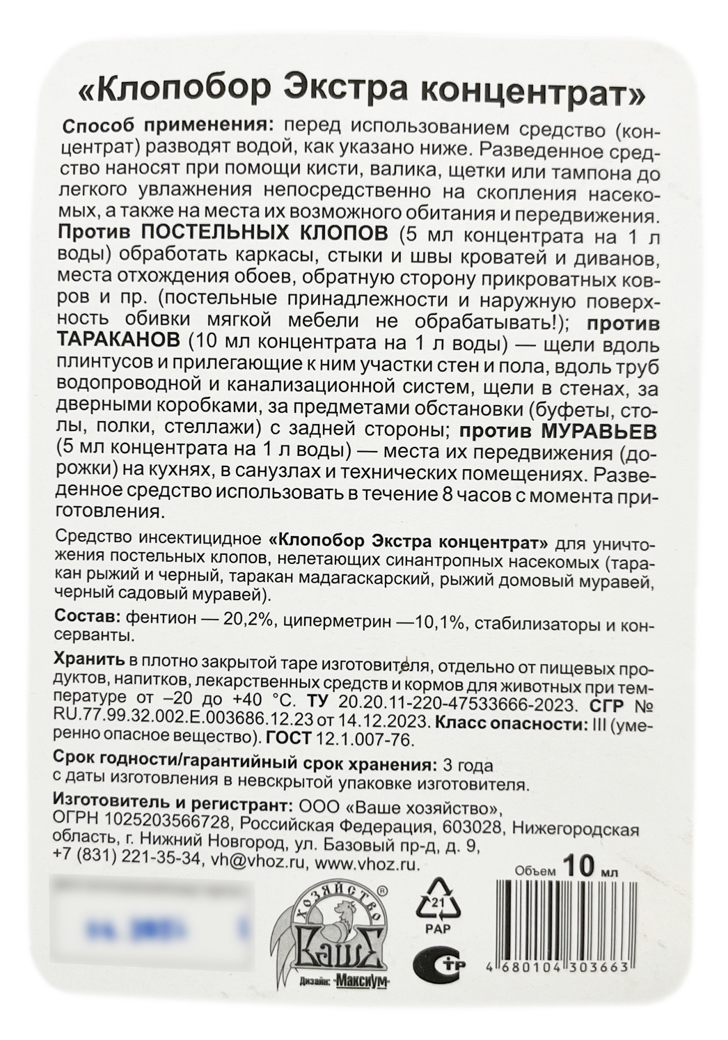 Клопобор ЭКСТРА 10млИнсектицидное средство для уничтожения постельных клопов, тараканов, муравьев.