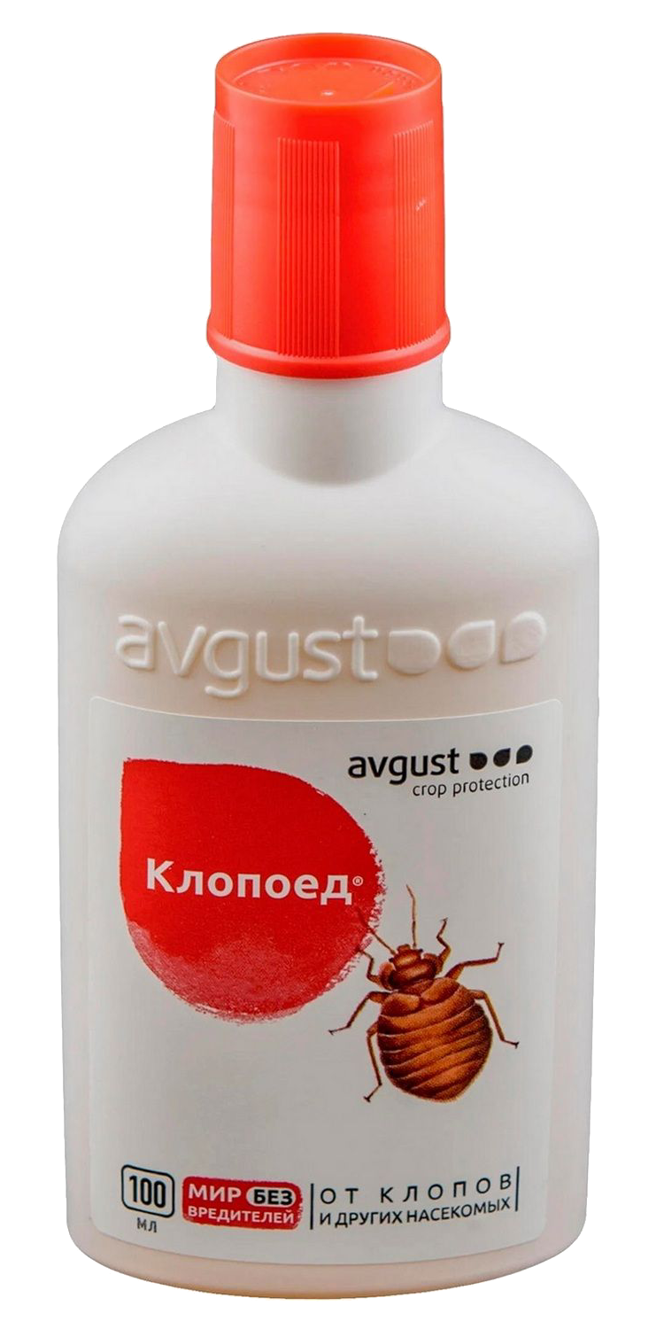 Клопоед 100мл Август.Клопоед-препарат для уничтожения постельных клопов, тараканов, домашних муравьев, блох, мух и личинок комаров. Средство от насекомых поможет уничтожить полчище вредных насекомых, необходимо обработать раствором инсектицида места обитания вредителей: щели в стенах, полу и мебели, за плинтусами, подоконники, обратные стороны картин, ковров, места отхождения обоев. Эффект препарата от клопов достигается через 2 суток после обработок, а гибель насекомых наступает уже через 2 часа.