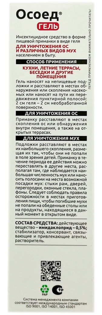 Осоед гель 30мл АВГУСТЭффективное средство для уничтожения ос и мух. Средство не имеет липкой текстуры, насекомые не прилипают к подложке. Гибель наступает практически моментально после поедания геля.