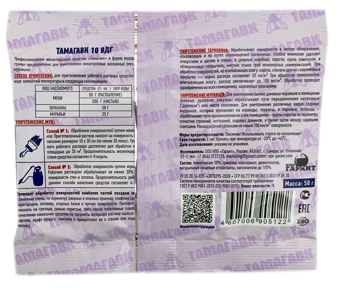 Тамагавк 50гВодорастворимые гранулы от тараканов, мух, муравьев.