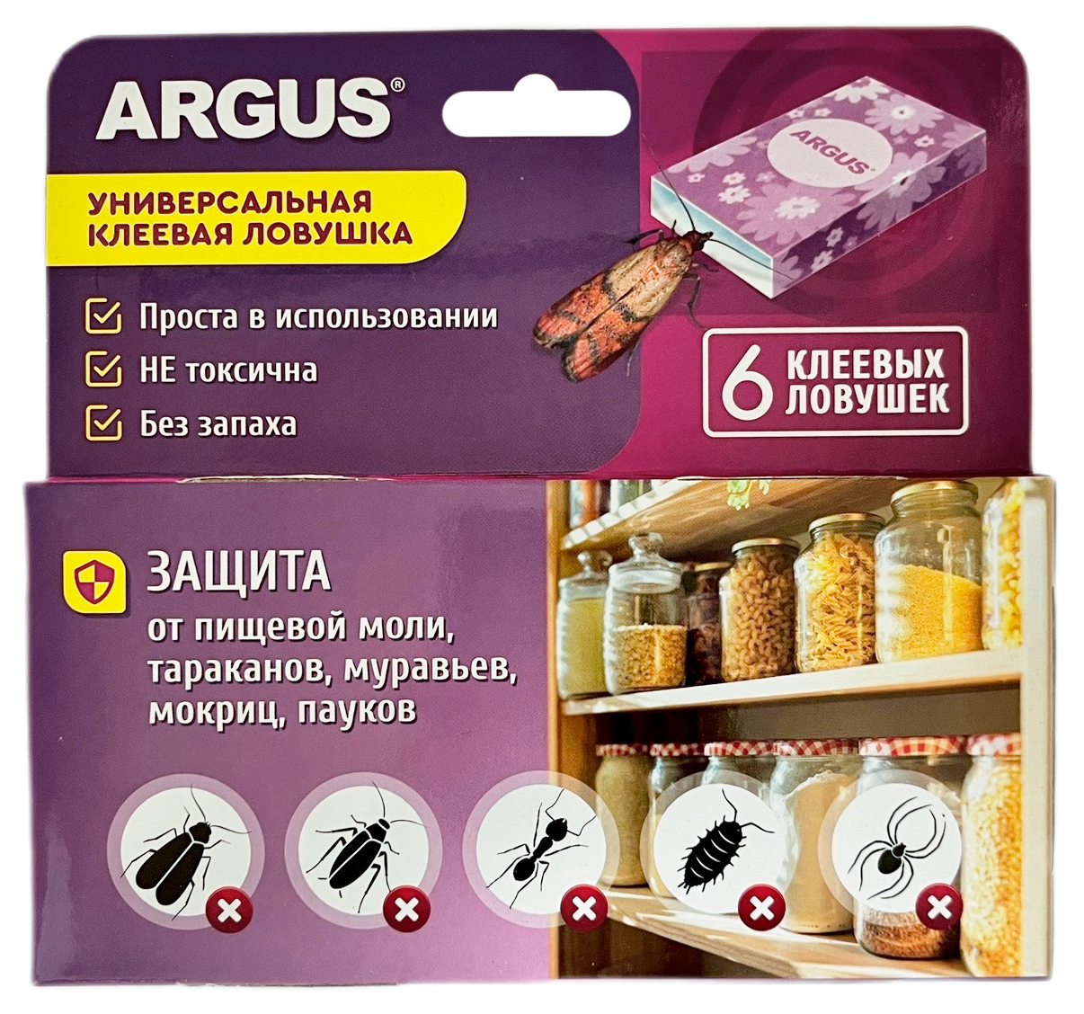 ARGUS универсальная клеевая ловушка от пищевой воли 6шт- проста в использовании;