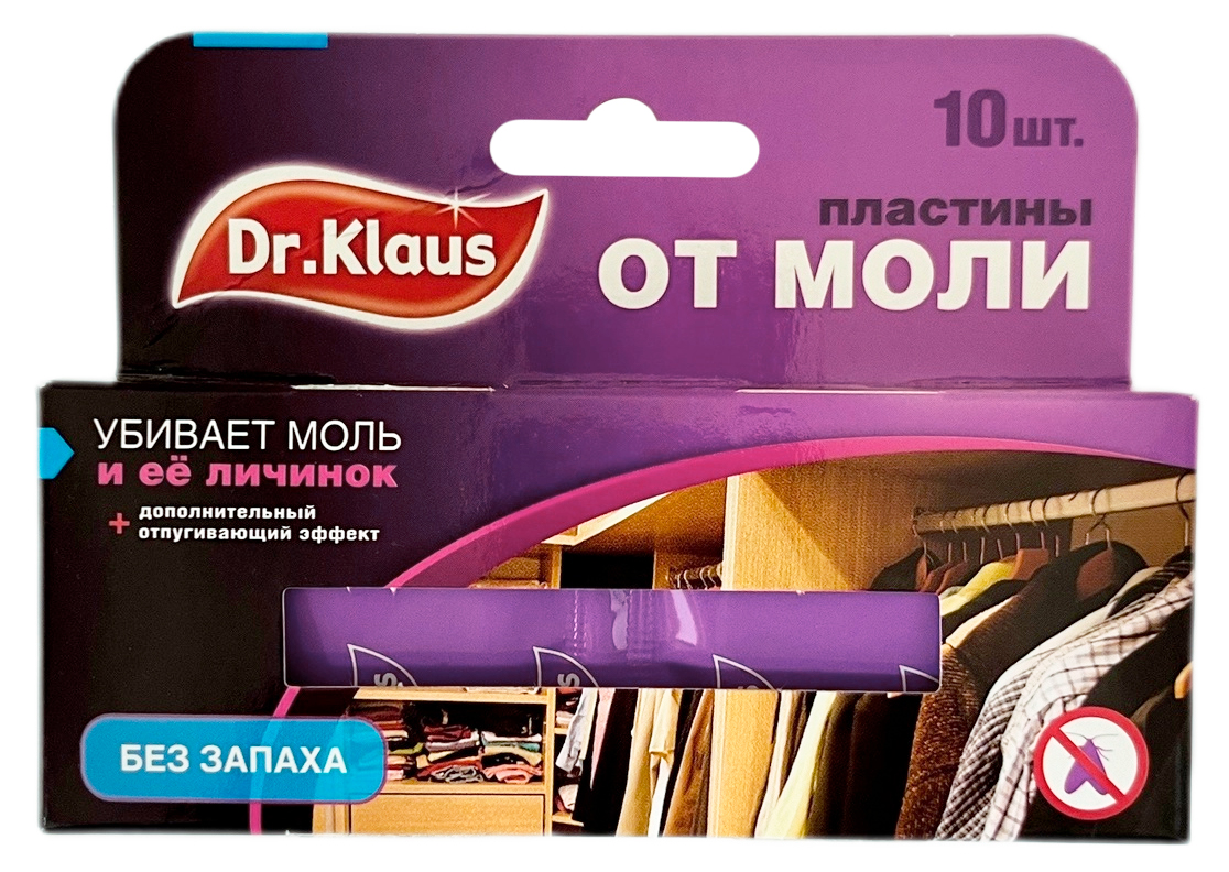 Dr. Klaus пластины от моли. 10шт.Убивает моль и её личинок + дополнительный отпугивающий эффект. БЕЗ ЗАПАХА!
