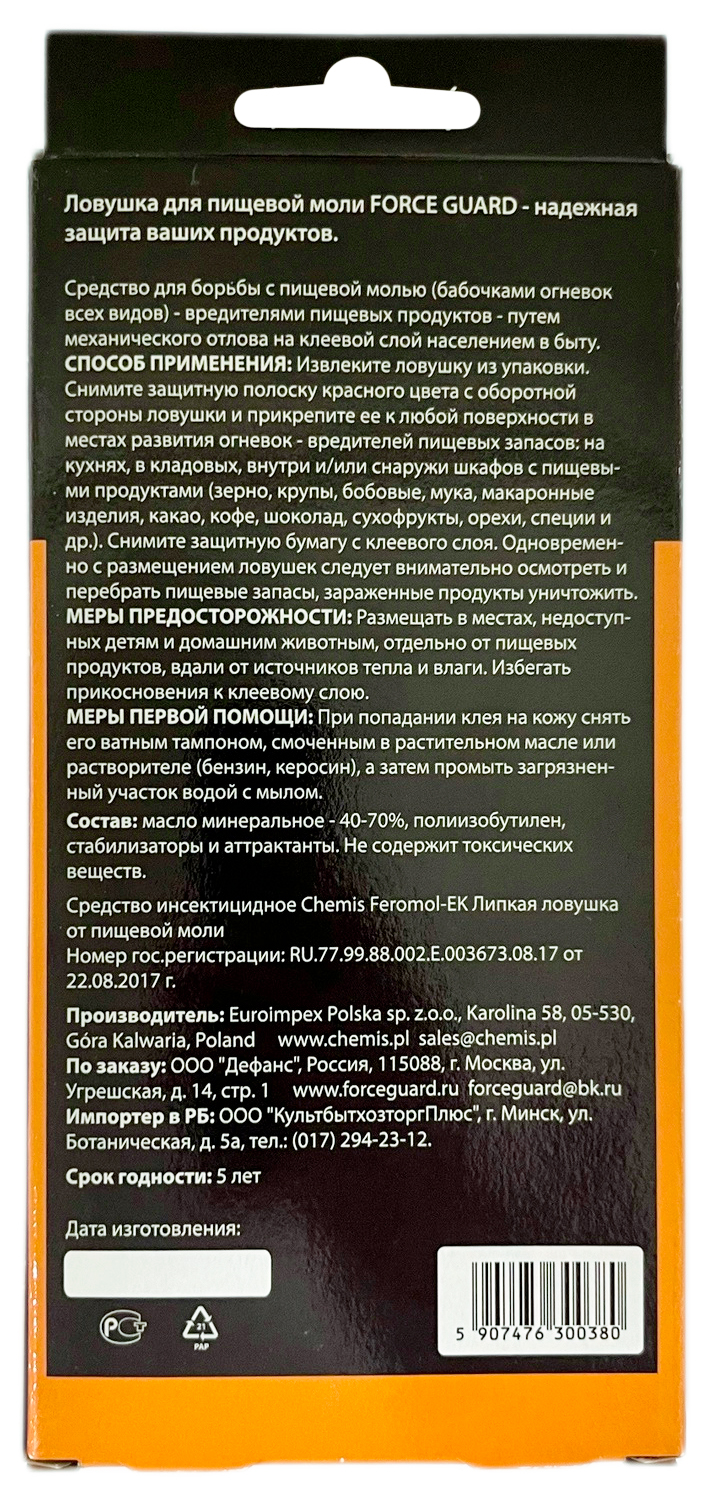 Force guard ловушка для пищевой моли. 2шт.Надежная защита ваших продуктов. Средство для борьбы с пищевой молью (бабочками огневок всех видов) - вредителями пищевых продуктов - путем механического отлова на клеевой слой.