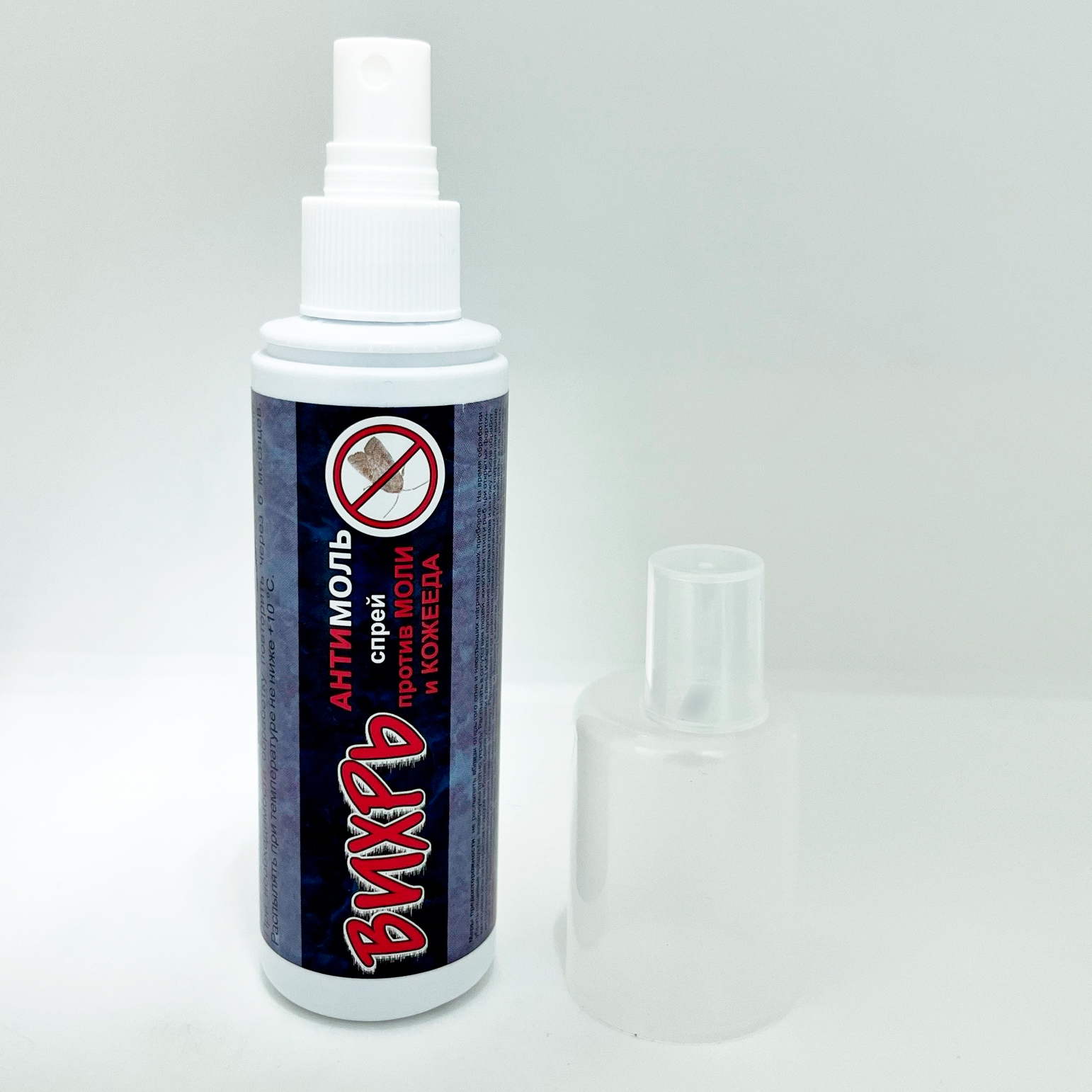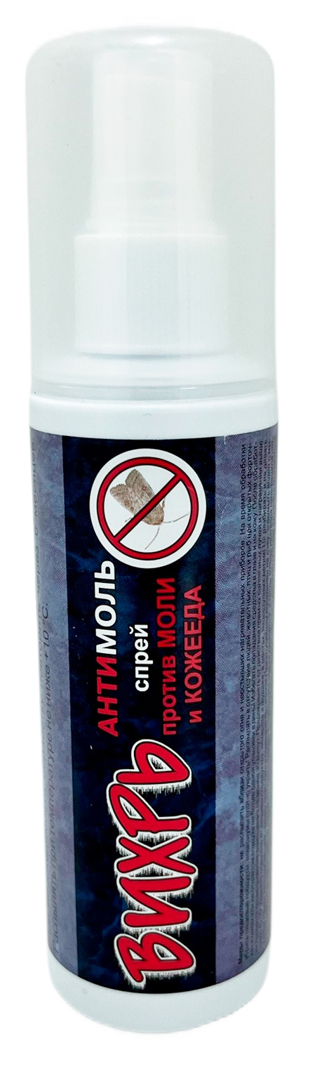 Спрей «Вихрь-Антимоль» — для защиты шерсти, меха и изделий из них от моли и кожеедов.Применение: упаковку встряхнуть в течение 2 секунд. Нажимая на распыляющее устройство, обработать изделие или ткань с расстояния 20–25 см из расчета 10 г/м² обрабатываемого изделия около 60 нажатий на распылительную головку. Для усиления действия обработать внутреннюю поверхность шкафа (комода), распыляя средство на всю её площадь. Одна упаковка объемом 300 мл предназначена для обработки 30 м² поверхности ткани в комнате площадью не менее 30 м². В комнате площадью 10–15 м² обрабатывать не более 5–10 м² ткани. При необходимости обработку повторить через 6 месяцев. Распылять при температуре не ниже +10° С.