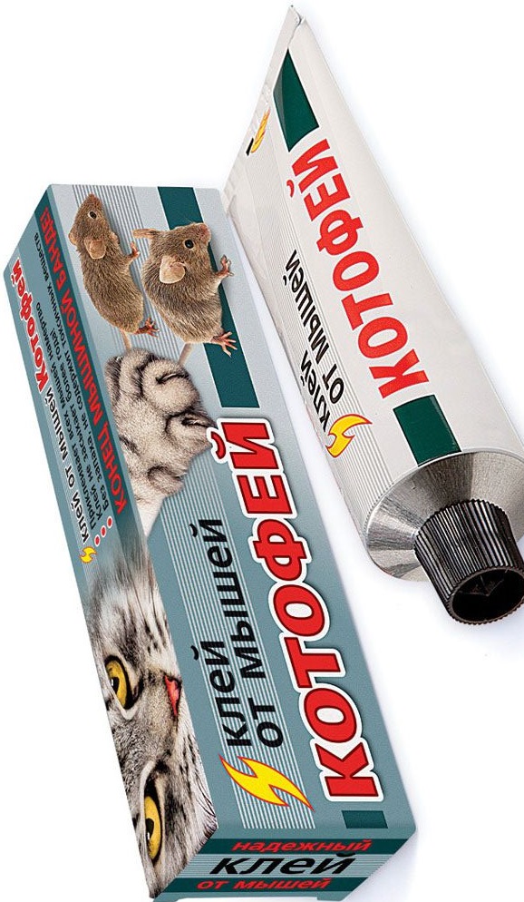 Клей ''Котофей'' - нетоксичное средство для отлова и уничтожения мышей и мелких крыс. В некоторых случаях применение отравленных приманок или мышеловок невозможно или нежелательно. В этом случае отличные результаты дает применение специального клея. Клей ''Котофей'' предназначен для отлова мышей и мелких крыс, обладает замечательными клеящими свойствами, надежно фиксирует ''влипших'' грызунов. Не содержит токсичных веществ, не пахнет, не отпугивает грызунов запахом. Легко наносится на подложки, имеет оптимальную консистенцию, не растекается. В ''намазанном'' виде очень, очень долгое время не высыхает, не покрывается коркой и не теряет своих свойств. Прекрасно ловит мышей как в сухих, так и во влажных помещениях, а также вне помещений. (Клеящие свойства немного снижаются лишь на морозе).Состав: полибутилен, полиизобутилен.