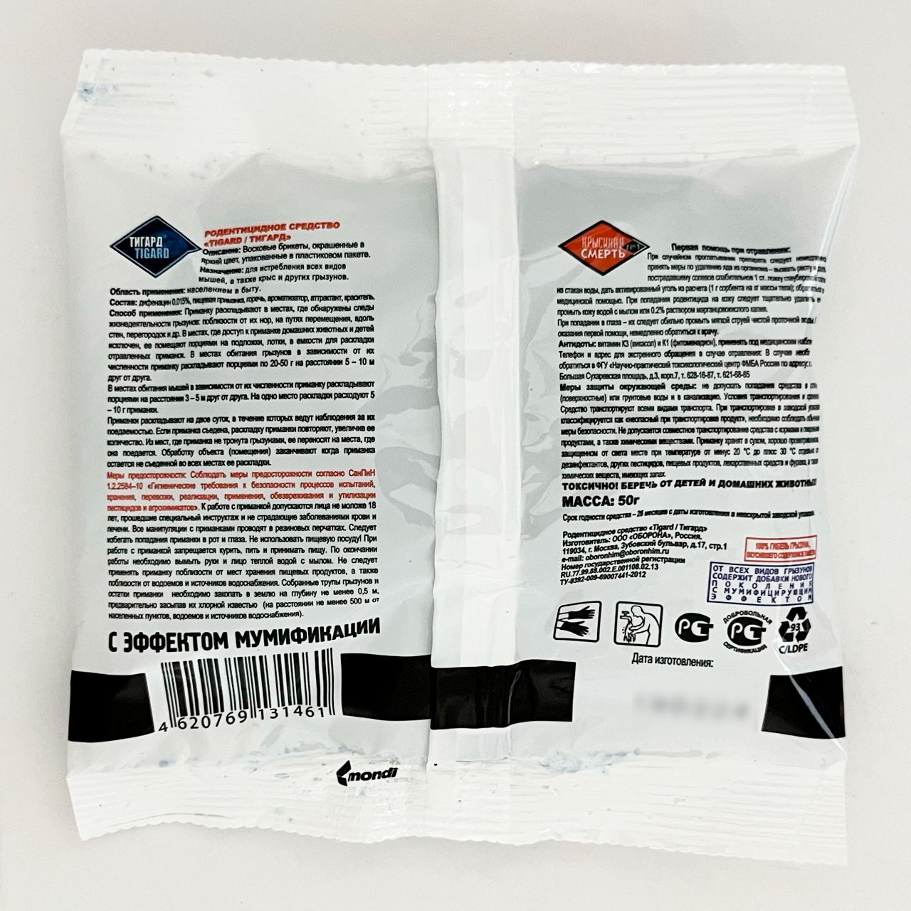 КРЫСИНАЯ СМЕРТЬ №1 восковые брикеты 50гРодентицидное средство ТИГАРД. Восковые брикеты, окрашенные в яркий цвет, упакованные в пластиковом пакете. Для истребления всех видов грызунов в быту.