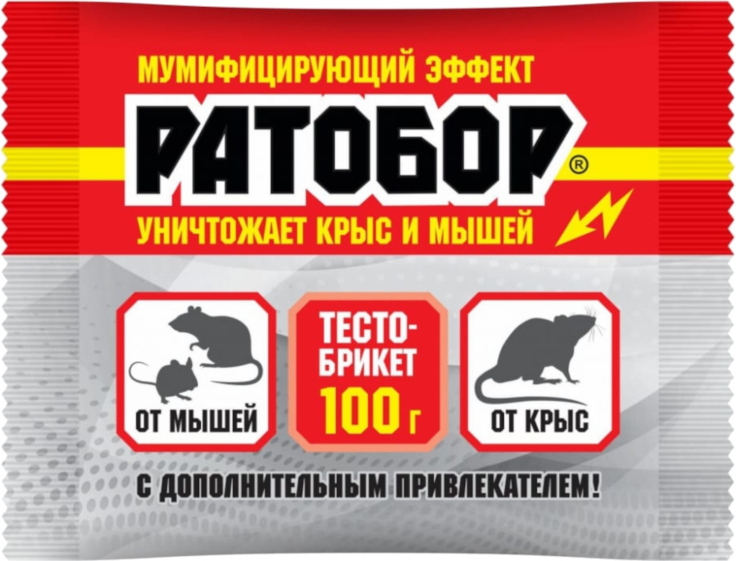 Тесто-брикет Ратобор от мышей 100гРатобор — тесто-брикет Готовая приманка для уничтожения крыс и мышей.
