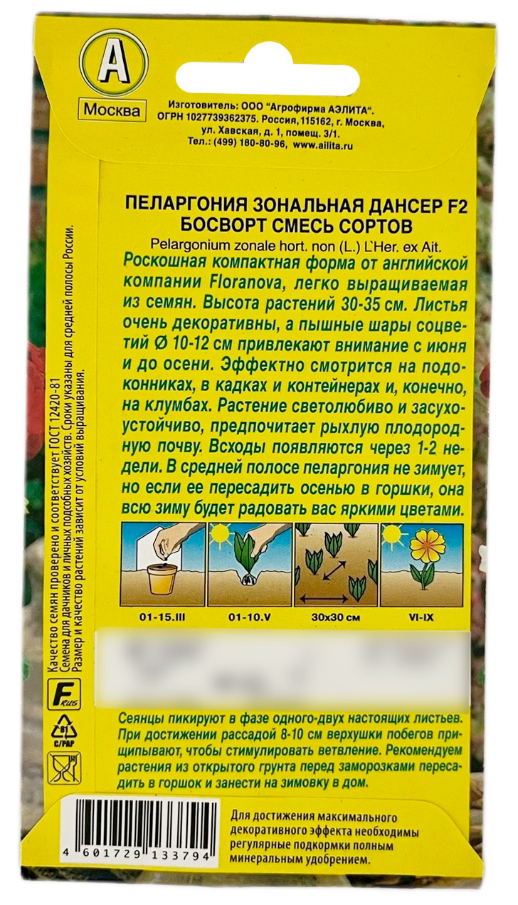 Пеларгония зональная дансер F2 БОСВОРТ СМЕСЬ СОРТОВ АЭЛИТАОдно из самых известных и неприхотливых цветочных растений для дома и сада от английской компании Floranova. Кусты компактные, плотные, округлой формы, высотой до 30-35 см. Листья очень декоративные, а пышные соцветия диаметром 10-12 см привлекают внимание с июня и до осени. Смесь эффектно смотрится на подоконниках в горшечной культуре и в садовых цветниках. Пеларгония – светолюбивая и засухоустойчивая культура, отзывчивая на хороший уход. В средней полосе не зимует в открытом грунте. В домашних условиях выращивается в качестве многолетника. При регулярной прищипке растения легко сохраняют свой роскошный облик.