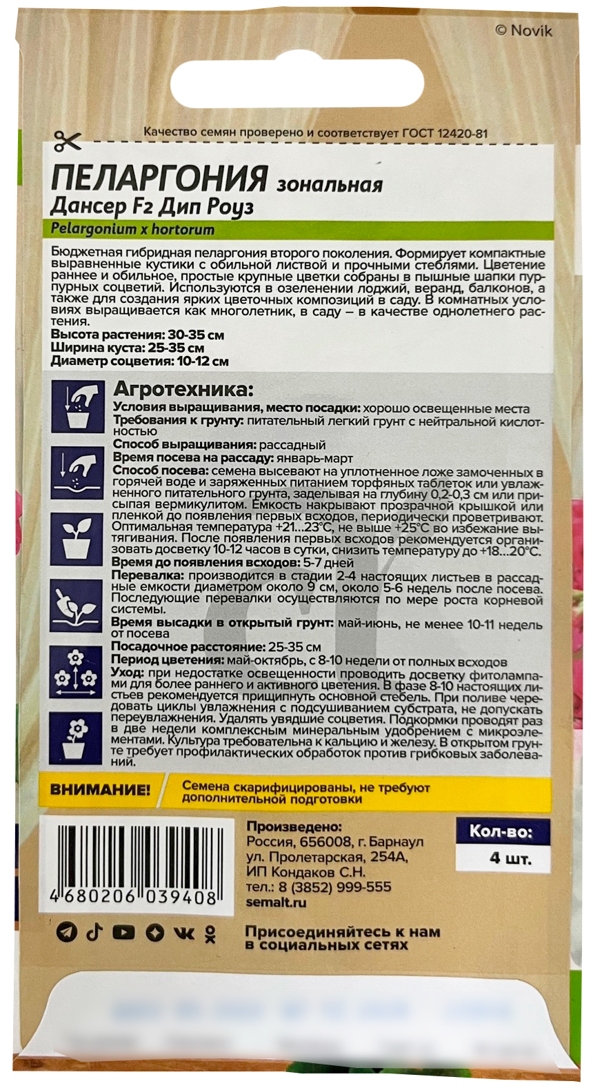 Пеларгония Дансер F2 зональная Дип Роуз 4шт семена