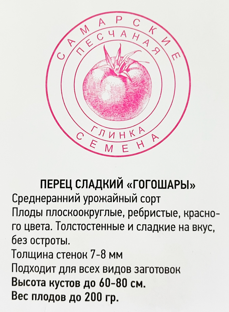 Перец Сладкий ГогошарыСреднеранний урожайный сорт. Плоды плоскоокруглые, ребристые, красного цвета. Толстостенные и сладкие на вкус, без остроты. Толщина стенок 7-8 мм. Подходит для всех видов заготовок.