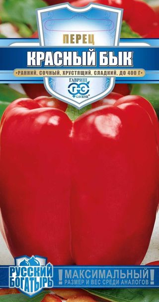 Перец Красный бык 15шт серия Русский богатырь семена