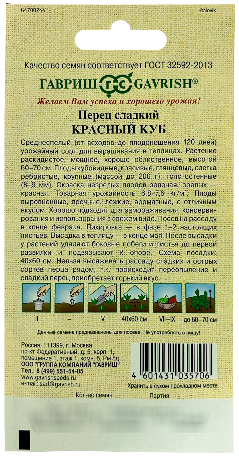 Перец Красный куб 0,1г автор. семена