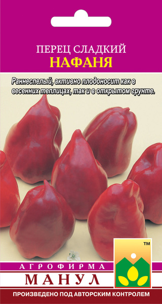 Перец Нафаня - урожайный, раннеспелый сорт: техническая спелость наступает на 95-100-й день, биологическая — на 120-130-й день от всходов. Куст — полудетерминантный, штамбовый, компактный, прямостоячий. Высота растений 70-130 см в зависимости от условий выращивания. Плод темно-зеленый, при созревании — красный, широкий, трехгранный конус, массой 140-170 г, размером 11-12?8 см, толщина перикарпия 6-8 мм. Плоды хорошо хранятся и пригодны для употребления в свежем виде и консервирования. Особенностью сорта является непрерывный рост, длительное цветение и плодообразование при высокой устойчивости растений к неблагоприятным условиям в период выращивания. Хорошо растет не только в весенних необогреваемых и обогреваемых теплицах, но также и в открытом грунте. Устойчив к вирусу табачной мозаики. Плотность посадки 5 раст./м2.Характеристики