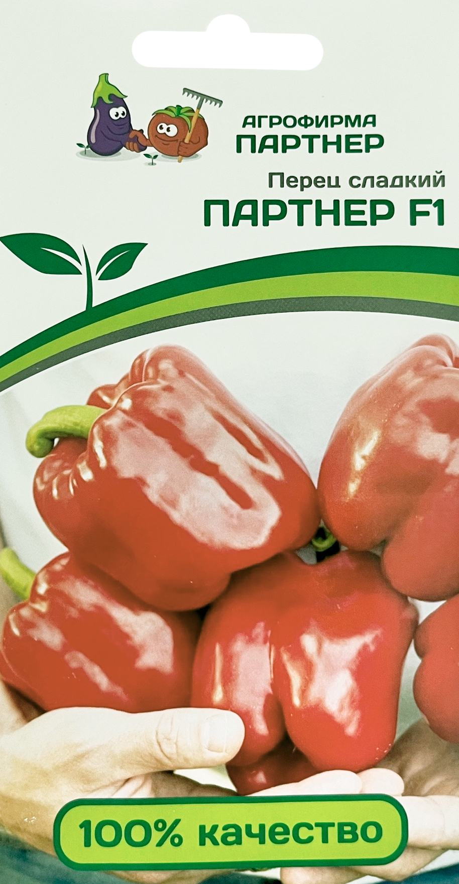 Перец Партнер F1Гибрид среднеспелый. От высадки рассады до созревания плодов 75-80 дней, растение мощное, благодаря хорошо развитой корневой системе без затруднений переносит неблагоприятные условия. Высота растения 120-140 см. Плоды кубовидной формы, ярко красного цвета, крупные, длиной 12 см, диаметром 9 см, массой 190-220 г, с толщиной стенки до 12 мм. Плоды обладают превосходными товарными качествами, великолепно подходят для приготовления лечо и потребления в свежем виде. При температуре 25-28°C, семена прорастают на 15-й день. Гибрид устойчив к вершинной гнили плодов, вирусу табачной мозаики. Высевать только пророщенные семена. Плотность посадки 3-4 растения/м2. Урожайность в открытом грунте более 8 кг/м2, в защищенном около 14 кг/м2.