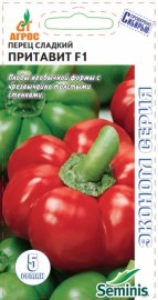 Среднеспелый уникальный гибрид с плодами, имеющими форму томата. Тип Томато Пеппер. Плоды длиной 5-6 см,диаметром 9-10 см, с чрезвычайно толстыми стенками. Окраска изменяется от зеленой в технической спелости до красной в биологической. Плоды перца ПРИТАВИТ F1 обладают превосходным, очень сладким вкусом.