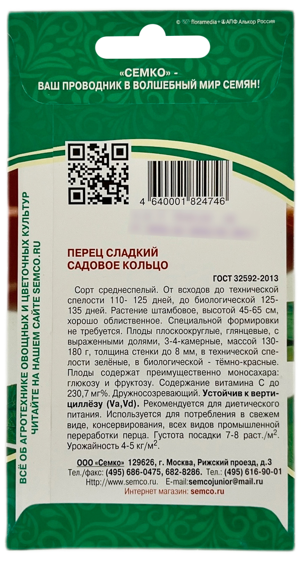 Перец сладкий САДОВОЕ КОЛЬЦО СЕМКОСорт среднеранний. От всходов до технической спелости 110–115 дней, до биологической 125–130 дней (период созревания укороченный). Растение штамбовое, высотой 45–65 см, с букетным плодоношением и дружным созреванием плодов. Специальной формировки не требуется. Плоды плоскоокруглые, глянцевые, с выраженными долями, 3–4-гнездные, массой 130–180 г, толщина стенки до 8 мм, в технической спелости зеленые, в биологической – темно-красные. Плоды содержат преимущественно моносахара: глюкозу и фруктозу, что делает их незаменимыми для диетического питания. Содержание аскорбиновой кислоты в плодах биологической спелости 230,7 мг%. Используется для потребления в свежем виде, консервирования, фарширования, во всех видах промышленной переработки перца, в том числе изготовления чипсов. Пригоден для изготовления перечных чипсов. Густота посадки 6–7 раст./м2, схема посадки 70х15 см. Устойчив к вертициллезному увяданию. Урожайность 4–5 кг/м2.