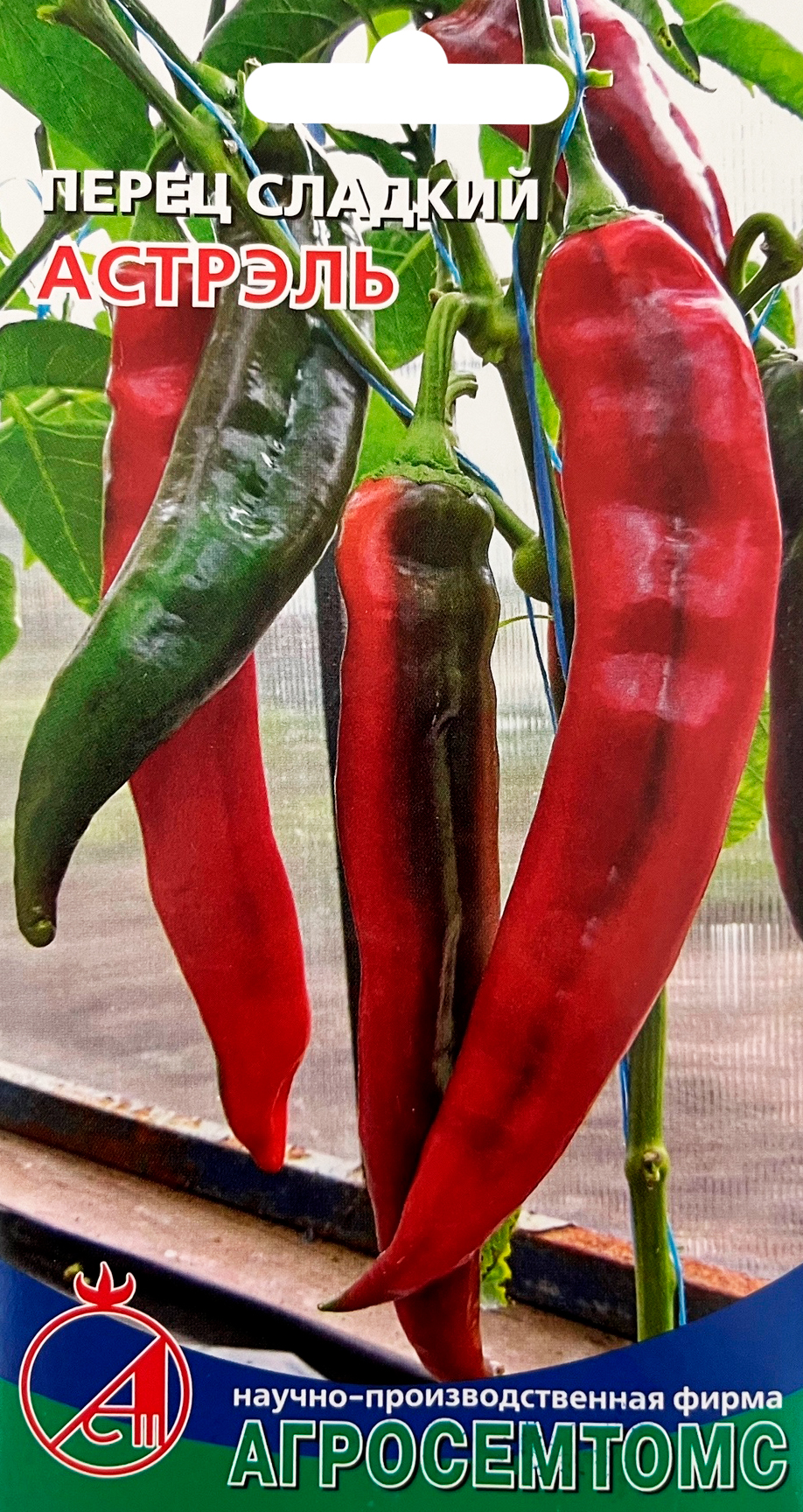 Среднеранний, крупноплодный сорт для теплиц. Растение высокорослое. Вегетационный период от всходов до технической спелости 115-125 дней. На 1 м2 размещают 2,5 — 3 растения. Формирование лучше вести в два стебля. Плоды крупные, красивые, узкотреугольной (хоботовидной) формы, длиной 22 – 25 см, в технической спелости окраска темно-зеленая, в биологической красная. Вкус у перца Астрэль – настоящий перечный и вместе с тем удивительно сладкий, аромат – нежный и запоминающийся.
