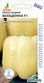 Ранний гибрид. На компактном растении образуются крепкие, большого размера плоды красивой кубической формы (10х11 см), отличающиеся толстой стенкой (6-7 мм) и оригинальным цветом, который изменяется от молочно-белого к ярко-оранжевому при полном созревании. БЕЛАДОННА F1 — чудесное сочетание высокой урожайности и отменного качества плодов.Особенности выращивания: рекомендуется выращивать в открытом грунте или под временными пленочными укрытиями с обязательной подвязкой к вертикальной опоре; рекомендуется выращивать рассаду без пикировки, что обеспечит более ранний сбор урожая.