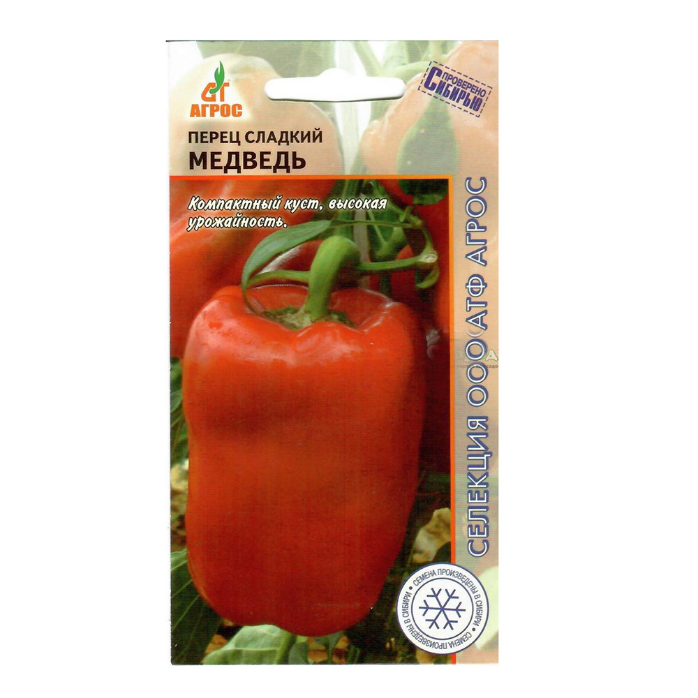 Перец "Медведь" 0.1г* САСорт среднераннего срока созревания. Растение штамбовое. Плод крупный (средняя масса 130 г), цилиндрической формы, 4-камерный. Окраска плода в технической спелости темно-зеленая, в биологической – темно-красная. Толщина стенки 9-10 мм. Вкус сладкий, мякоть нежная и сочная. Плоды пригодны для свежего использования, переработки и фарширования.