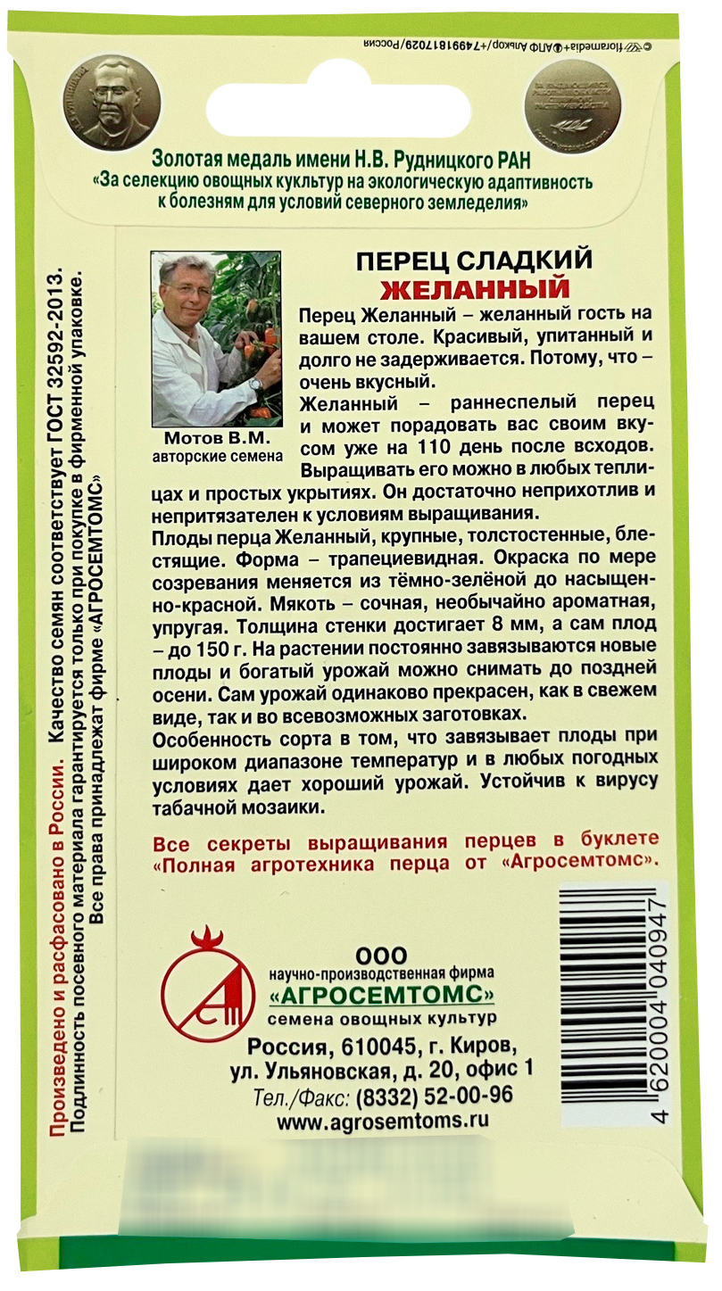 Перец сладкий ЖеланныйПерец Желанный – желанный гость на вашем столе. Красивый, упитанный и долго не задерживается. Потому, что – очень вкусный.