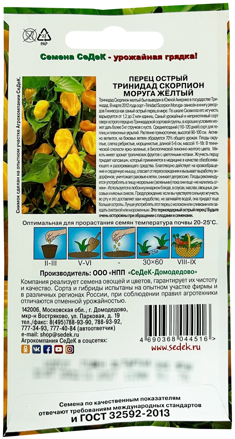 Перец Тринидад Моруга Скорпион желтый(острый) (Евро, 5) семена