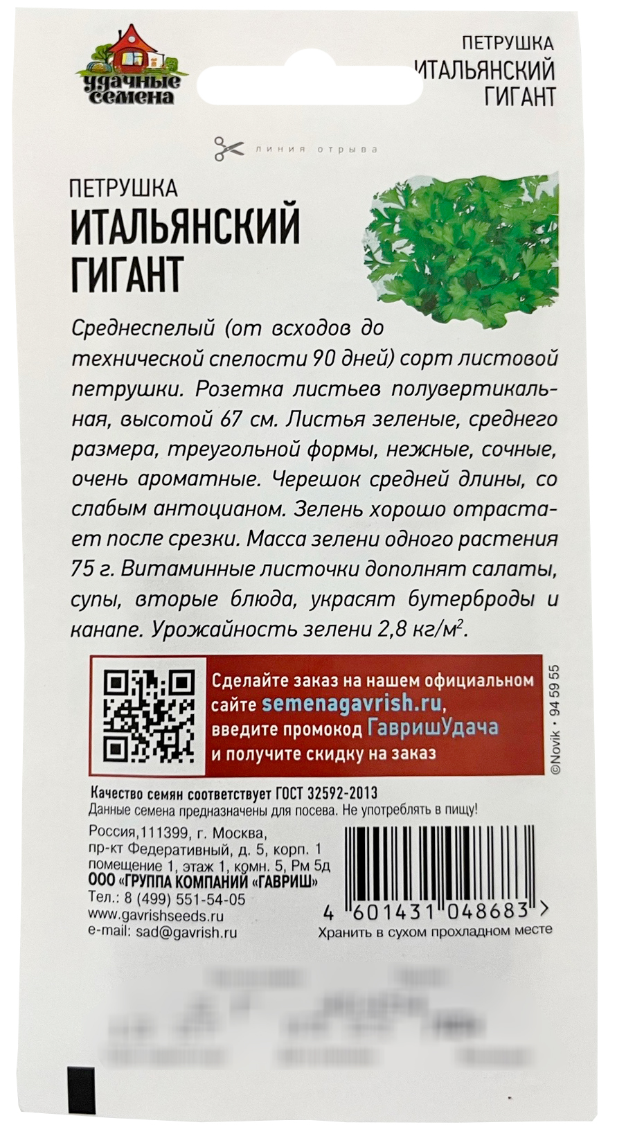 Петрушка Итальянский гигант 2 г Уд.с. семена