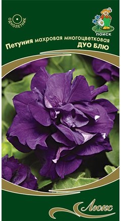 Красивые кустики высотой 20-30 см с крупными цветками диаметром 6-7 сантиметров. Соцветия махровые, ярко-синие, с гофрированными лепестками. Листва аккуратная. Цветет с июня и вплоть до сентября, подходит для универсального использования.Петуния любит солнечный свет, растет практически на всех типах питательных почвогрунтов. Растение засухоустойчивое. На рассаду семена сеют с февраля по март, слегка вдавливая в почву и не присыпая поверх. Рассаду накрывают стеклом и помещают в солнечное место. При +18-20 градусах первые всходы появляются через 14-20 дней. На стадии двух настоящих листьев производят пикировку растений. На постоянное место высаживают после минования угрозы внезапных заморозков.