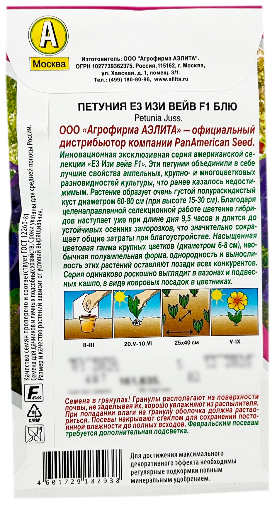 Петуния Е3 ИЗИ ВЕЙВ F1 БЛЮ АЭЛИТАИнновационная эксклюзивная серия американской селекции «Е3 Изи вейв F1». Эти петунии объединили в себе лучшие свойства ампельных, крупно- и многоцветковых разновидностей культуры, что ранее казалось недостижимым. Растение образует очень густой полураскидистый куст Ø 60-80 см (при высоте 15- 30 см). Благодаря целенаправленной селекционной работе цветение гибридов наступает уже при длине дня 9,5 часов и длится до устойчивых осенних заморозков, что значительно сокращает общие затраты при благоустройстве. Насыщенная цветовая гамма крупных цветков (Ø 6-8 см), необычная полуампельная форма, однородность и выносливость этих растений оставляют позади всех конкурентов. Серия одинаково роскошно выглядит в вазонах и подвесных кашпо, в виде ковровых посадок в цветниках.