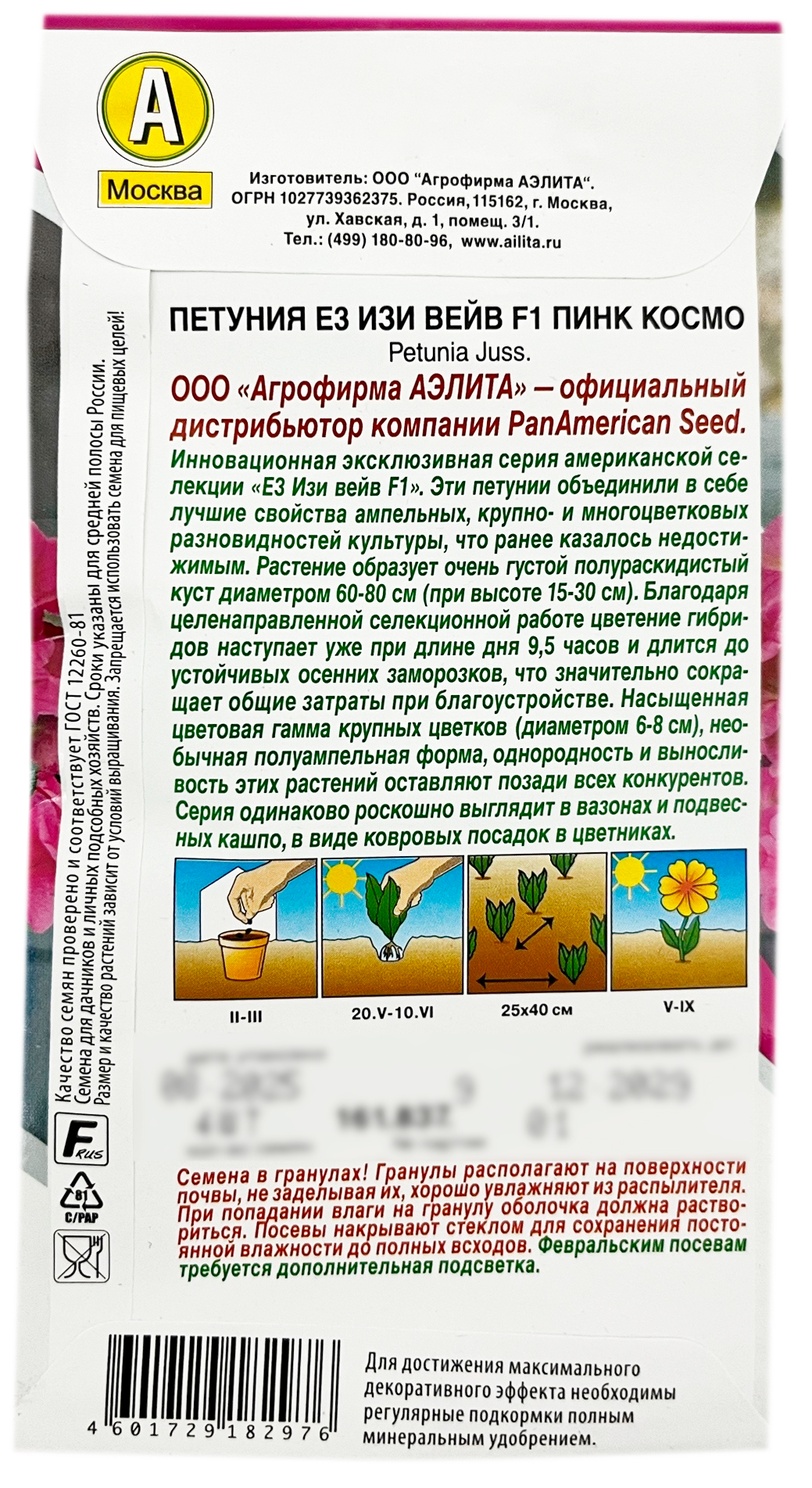 Петуния Е3 ИЗИ ВЕЙВ F1 ПИНК КОСМО АЭЛИТАИнновационная эксклюзивная серия американской селекции «Е3 Изи вейв F1». Эти петунии объединили в себе лучшие свойства ампельных, крупно- и много цветковых разновидностей культуры, что ранее казалось недостижимым. Растение образует очень густой полураскидистый куст Ø 60-80 см (при высоте 15- 30 см). Благодаря целенаправленной селекционной работе цветение гибридов наступает уже при длине дня 9,5 часов и длится до устойчивых осенних заморозков, что значительно сокращает общие затраты при благоустройстве. Насыщенная цветовая гамма крупных цветков (Ø 6-8 см), необычная полуампельная форма, однородность и выносливость этих растений оставляют позади всех конкурентов. Серия одинаково роскошно выглядит в вазонах и подвесных кашпо, в виде ковровых посадок в цветниках.